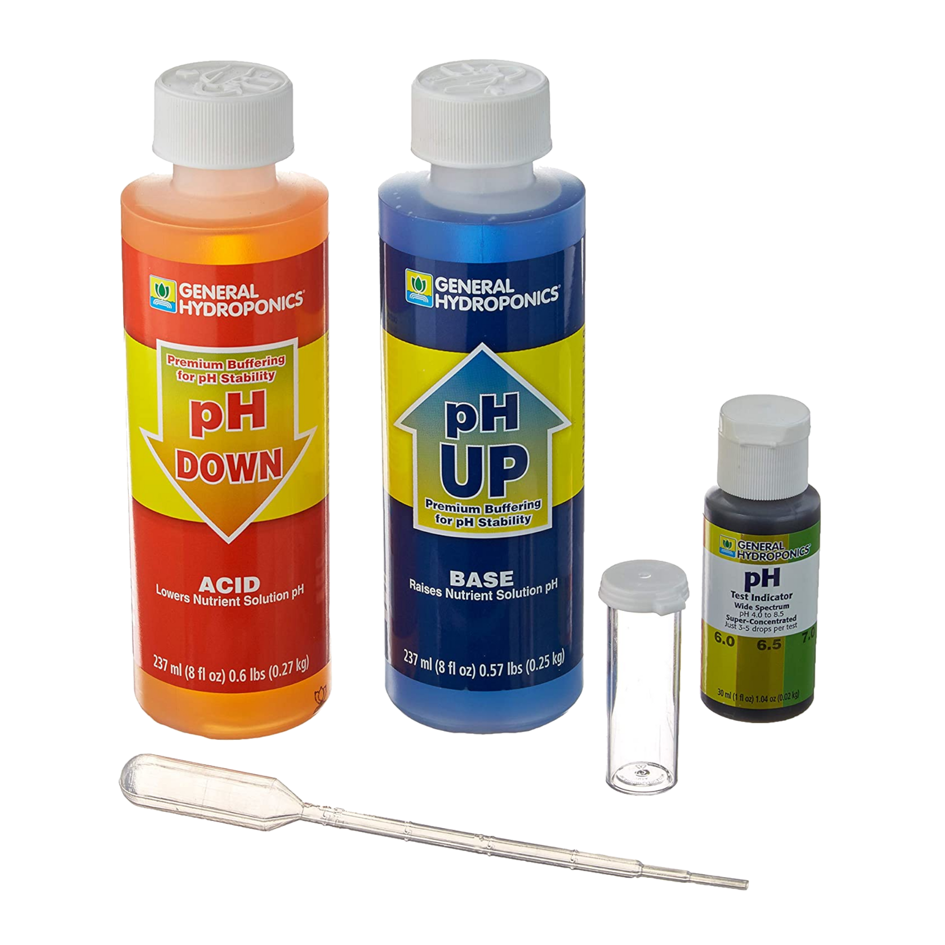 Use per packaging. Fill indicator vial halfway with nutrient solution (we recommend testing the entire solution BEFORE mixing the nutrients as the nutrients cause a momentary change in pH for a few hours, but corrects itself as the powder dissolves) and add a few drops of indicator solution into the vial. Compare the resulting color of the solution. Add pH down if the pH is above the ideal range and pH up if the pH is below the range. Start with small amounts of pH up down until you get the hang of it!