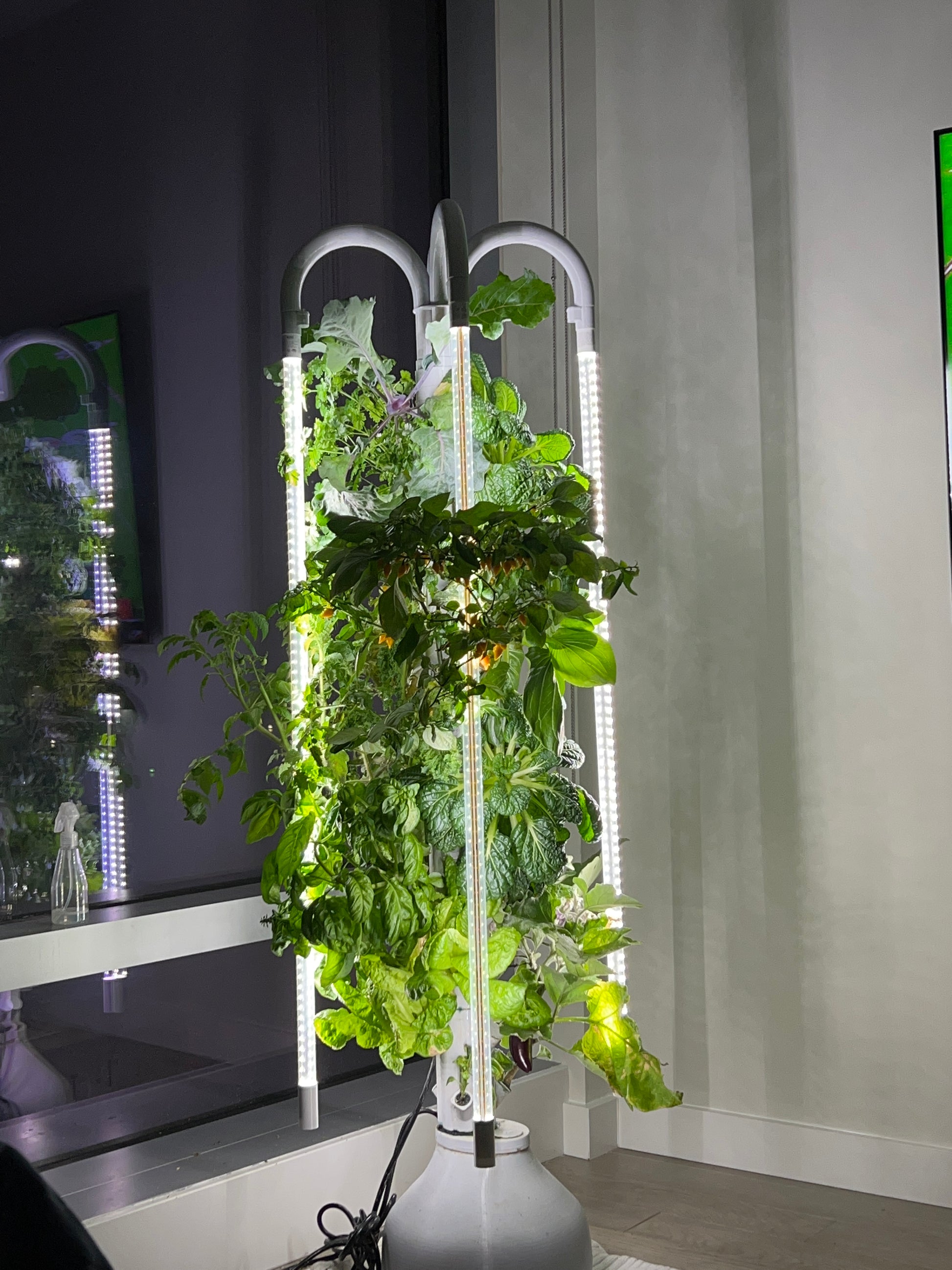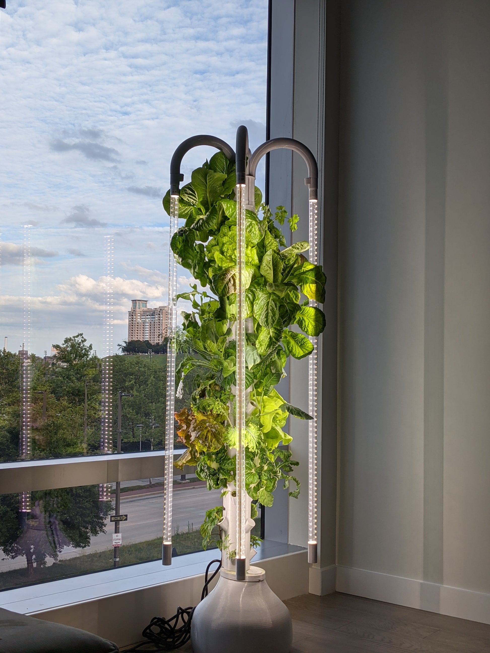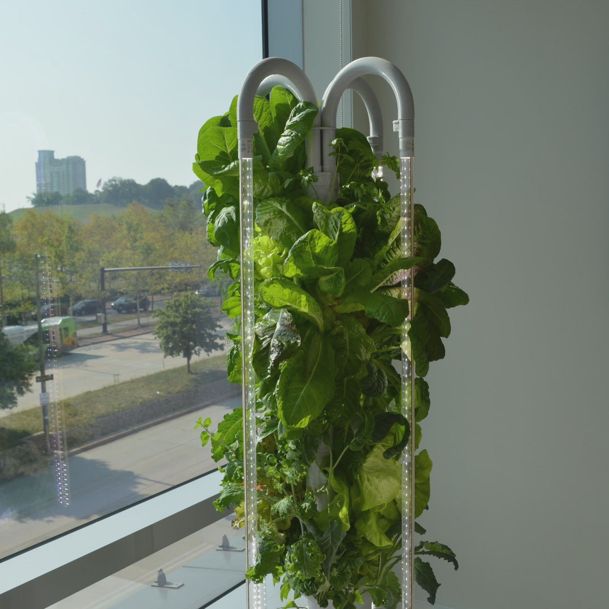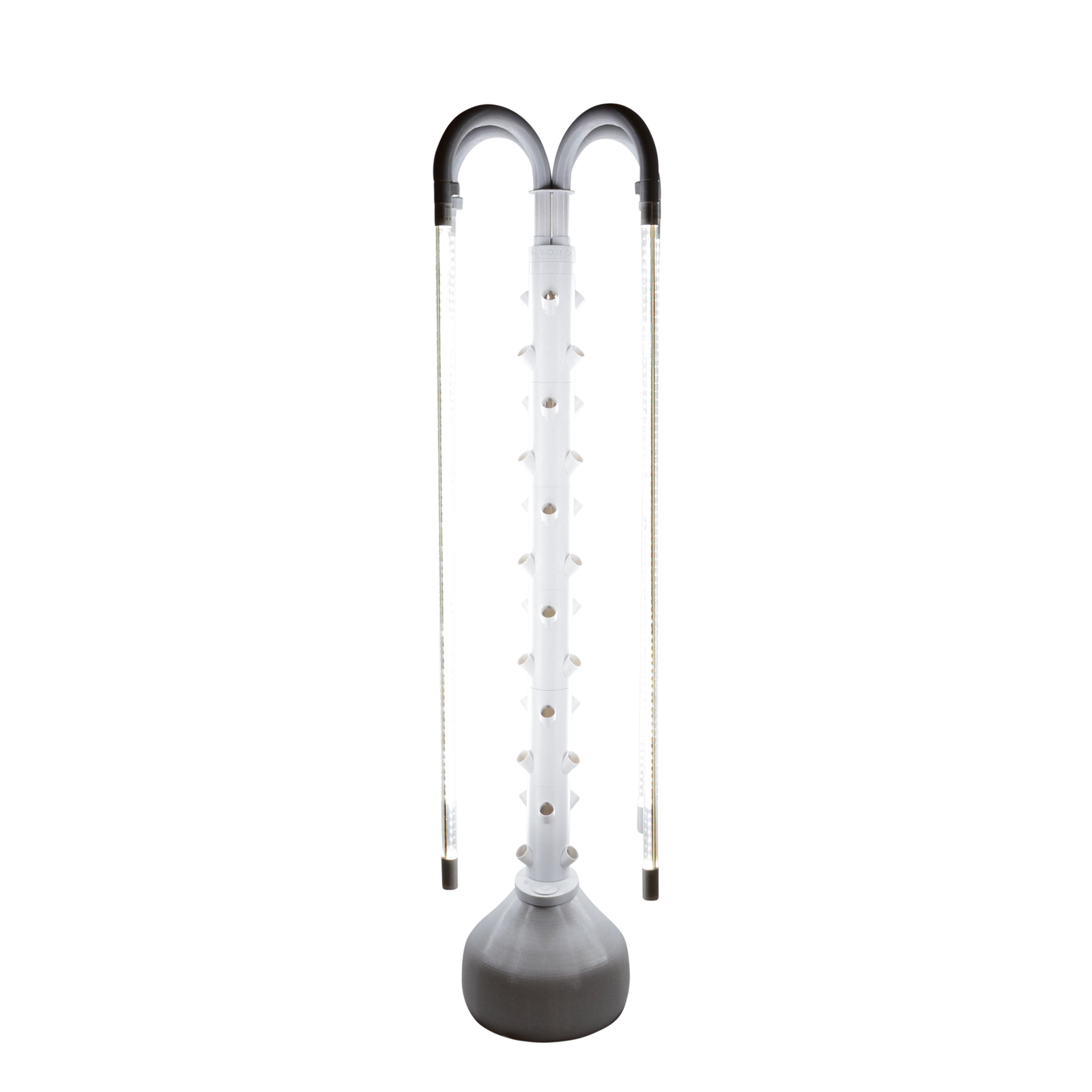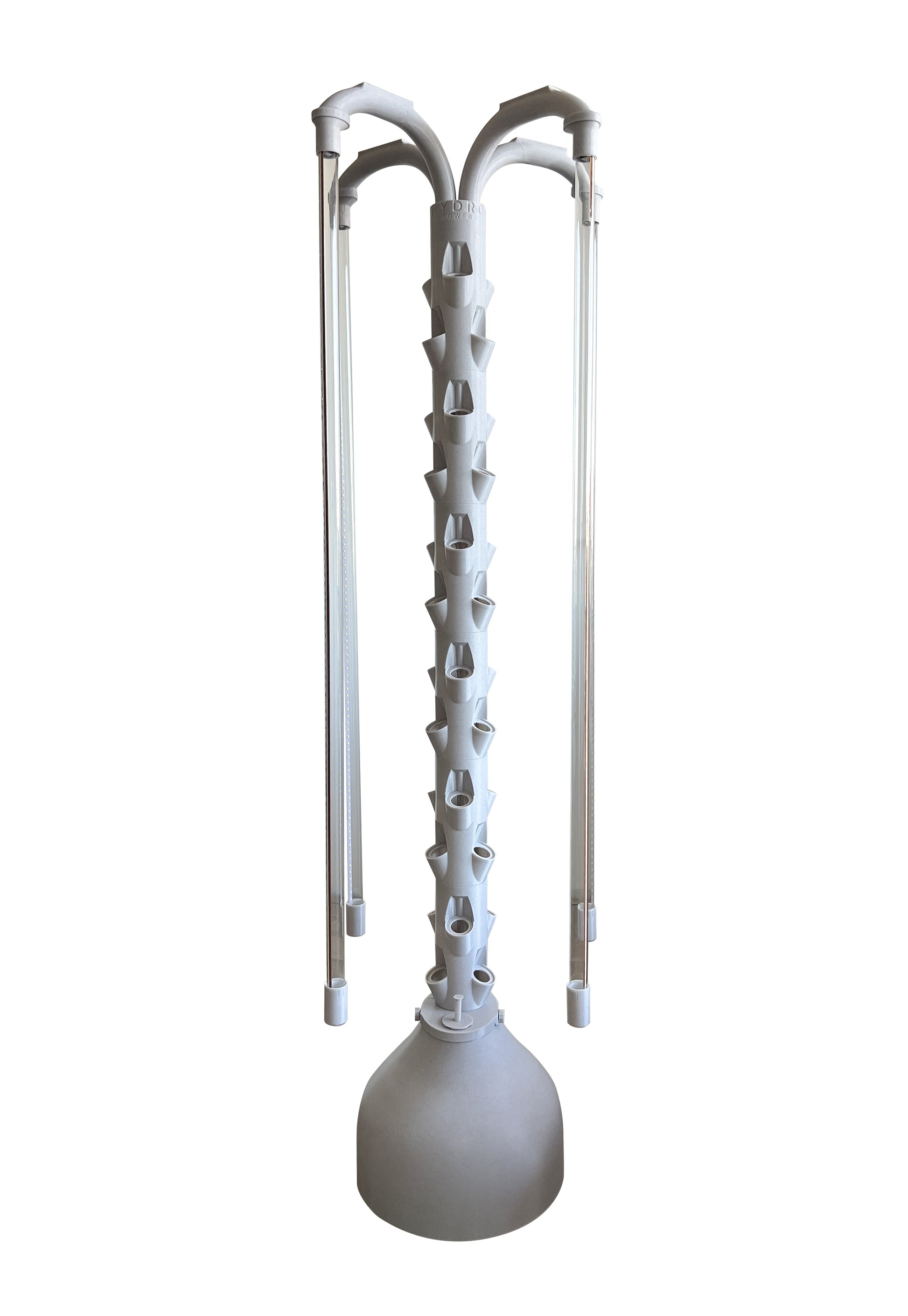 The reservoir holds three gallons of the nutrient solution mixture which is pumped throughout the system, giving all 36 plants a little group shower. The HD1.5 model is an improvement to our original tower that comes with a complete lighting system to give your little friends the much-deserved rays they need while only taking up a 14 X 14 inch square of floor space and rising five and a half feet vertically.